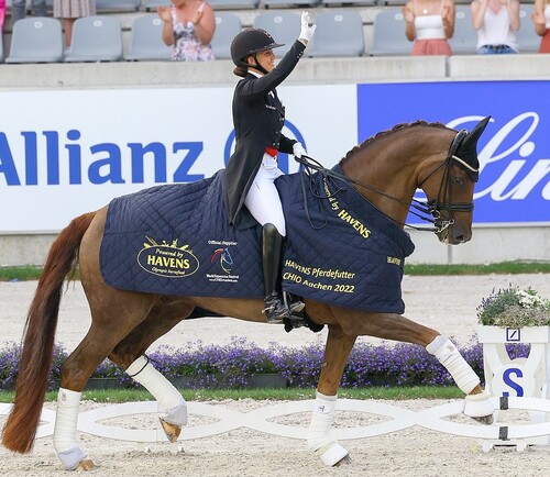 HAVENS Horsefeed has been the official feed supplier of the horses participating in CHIO since 2004. On Wednesday, June 29th, the HAVENS Dressage Prize took place. Very appealing top riders participated in this Grand Prix test at 4-star level. With a super score of no less than 80.413%, the Danish Cathrine Dufour won the test with Bohemian. Second place went5 to Adrienne Lyle (USA) and Salvino with 76.891%. German Frederic Wandres finished third with Bluetooth OLD, with a score of 75.217%.